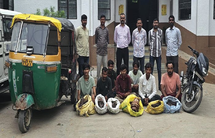 સુરેન્દ્રનગર જિલ્લામાં છેલ્લા કેટલાક સમયથી ઘરફોડ ચોરી, લૂંટ, પશું ચોરી જેવી ઘટનાઓ સામાન્ય બનતી નજરે પાડી રહી છે તેવામાં ધ્રાંગધ્રા પંથકમાં છેલ્લા કેટલાક સમયથી વીજ ટ્રાન્સફોર્મર અને સોલર પ્લાંતના વગરની ચોરી કરતી ગેંગ પણ સક્રિય થઈ હતી. ધ્રાંગધ્રા પંથકમાંથી છાસવારે વીજ ટ્રાન્સફોર્મરમાંથી કોપર અને વાયર ચોરી થવાની ઘટનાઓ સામે આવતા સ્થાનિક પોલીસ આ ગેંગને પકડવા વધુ સક્રિય બની હતી જેમાં ગત રાત્રીના સમયે તાલુકા પી.એસ.આઇ કે.એચ.ઝનકાત, કુલદીપસિંહ ઝાલા, વિક્રમભાઈ રબારી, વિભાભાઇ ધેડ, નરેશભાઈ ભોજીયા સહિતનો સ્ટાફ પેટ્રોલીંગમાં હોય તેવા સમયે ધ્રાંગધ્રા હાઇવે પર કુડા ચોકડી નજીક એક બાઈક અને ઓટો રિક્ષા શંકાસ્પદ હુવના લીધે બાઈક અને રિક્ષા ચાલકને રોકી તપાસ કરતા તેઓની પાસેથી કોથળામાં કોપર અને વાયર મળી આવ્યા હતા