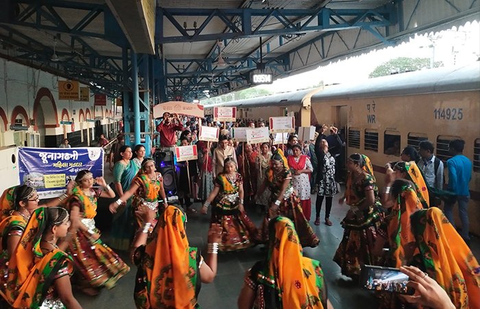 જૂનાગઢ જિલ્લા ચૂટણી તંત્ર દ્વાારા મતદાન જાગૃતી અર્થે એક આગવો પ્રયાસ કરવામાં આવ્યો છે. જૂનાગઢ એસ.ટી બસ સ્ટેન્ડ ખાતે ગુજરાતની આગવી ઓળખ એવા ગરબા કરી તા. 7 મી મે એ અચુક મતદાન કરવા માટે સંદેશ આપ્યો હતો. મહાનગર પાલિકા સંચાલિત આંગણવાડીની કિશોરીઓએ પરંપરાગત પરિધાનમાં ગરબા કર્યા હતા.આમ લોકશાહીના મહાપર્વમાં ગરબા થકી મતદારોને મતદાન માટે જાગૃત કરવામાં આવ્યા હતા. આ ગરબા બાદ નિર્ભયતાપૂર્વક, ધર્મ, વંશ, જ્ઞાતિ, જાતિ, ભાષા કે અન્ય કોઈપણ પ્રકારના પ્રલોભનોથી પ્રભાવિત થયા સિવાય મતદાન કરવા માટે પ્રતિજ્ઞા લીધી.આ ક્રયક્રમને સફળ બનાવવા પ્રોગ્રામ ઓફિસર વત્સલાબેન દવેએ જહેમત ઉઠાવી હતી.