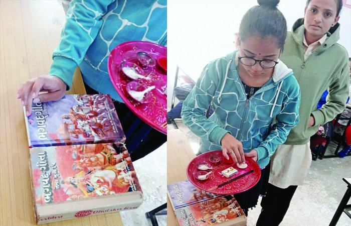 સ્વામી વિવેકાનંદ કોલેજ ઑફ કોમર્સ એન્ડ આર્ટ્સ પાલિતાણામાં આજે શ્રીમદ્ ભગવદ્ ગીતા જયંતિની ઉજવણી કરવામાં આવી હતી.જેમાં વિદ્યાર્થિનીઓએ શ્રીમદ્ ભગવદ્ ગીતા ગ્રંથની કુમકુમ અને અક્ષતથી પૂજા કરી આરતી પણ ઉતારી હતી. પ્રા.કીર્તિ ધુરકા તેમજ પ્રા. ઝરણા ત્રિવેદીએ ગીતાનું માનવ જીવનમાં મહત્ત્વ અને મહાનતા વિષે વક્તવ્ય આપ્યું હતું.તેમજ શ્રીમદ્ ભગવદ્ ગીતાનાં કેટલાંક શ્લોકનું ગાન પણ કરવામાં આવ્યું હતું.આ તકે આચાર્ય ભાવેશભાઈ ઉપસ્થિત રહ્યાં હતા. તેમજ શ્રી વિજયભાઈ પંડ્યાના માર્ગદર્શનથી આ આયોજન કરવામાં આવ્યું હતું.સહુના સહયોગથી કાર્યક્રમ સફળ રહ્યો હતો.