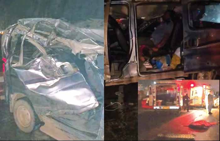 મોગલ ધામ નજીક વહેલી સવારે કારના કુરચેકુરચા, સ્ટિયરિંગ પરથી કાબૂ ગુમાવતા દુર્ઘટના: મૃતક તલોદનો યુવાન, 4 ઘાયલ સોલા સિવિલમાં ખસેડાયા