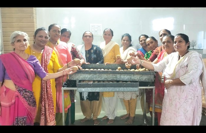 ગોંડલ તાલુકાના ચરખડી ગામે દર પૂનમે ચરખડી ગામ સમસ્ત મહિલાઓ દ્વારા રામદેવપીરના મંદિરે રોટલી બનાવી ને ગાય અને શ્વાન (કૂતરા) ને ખવડાવવામાં આવે છે. છેલ્લા 8 પૂનમથી આ રીતે રોટલી બનાવીને ખવડાવવાનું ચાલુ છે. ત્યારે આજે ગુરુ પૂનમના દિવસે મહિલાઓ દ્વારા ચૂરમાના લાડવા બનાવવામાં આવ્યા હતા. જેમાં 29 કિલો ગોળ, 51 કિલો ઘઉંનો લોટ, 20 કિલો તેલ સહિતની ચીજ વસ્તુઓ ઉપયોગ કરી 100 કિલો ચૂરમાના લાડવા બનાવવામાં આવ્યા છે. આ ચુરમાના લાડુ ચરખડી ગામ અને સિમ વિસ્તારમાં ગાયો અને શ્વાનને ખવડાવવા આવ્યા હતા અને ચરખડીના સમસ્ત ગામ અને મંદિર તરફથી પણ આ સેવામાં યોગદાન મળ્યો હતો.