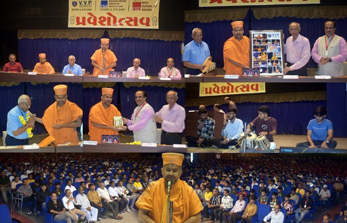 પ્રથમ વર્ષ ડિગ્રી, ડિપ્લોમા અને ડિપ્લોમા ટુ ડિગ્રીના સેમેસ્ટર ત્રણના નવાગંતુક વિદ્યાર્થીઓ માટે વીવીપી એન્જિનિયરિંગ કોલેજમાં પ્રવેશોત્સવનું આયોજન ભવ્ય રીતે કરવામાં આવ્યું. કાર્યક્રમમાં બીએપીએસ સંસ્થાના સ્વામી અપૂર્વમુનિ, સ્વામી સ્વરૂપનિષ્ઠજી, ટ્રસ્ટીઓ ડો. નરેન્દ્રભાઈ દવે, ડો. નવીનભાઈ શેઠ, પ્રિન્સિપાલ ડો. પિયુષભાઈ વણઝારા, અને આર્કિટેક કોલેજના પ્રિન્સિપાલ પ્રો. દેવાંગભાઈ પારેખ, પ્રો. શૈલીબેન ત્રિવેદી ઉપસ્થિત રહ્યા. અપૂર્વમુનિ સ્વામીએ વિદ્યાર્થીઓને સંબોધિત કરતા જણાવ્યું કે, રિજેક્શન ભયંકર નથી, પણ તેના પરથી શીખવું જરૂરી છે. તેમણે ભાવિ એન્જિનિયરોને પ્રેરણા આપી કે વૈશ્વિક સ્તરે ભારતની ઓળખ માટે વિદ્યાર્થીઓએ શિક્ષણમાં જોર અને પ્રતિબદ્ધતા સાથે આગળ વધવું જોઈએ.