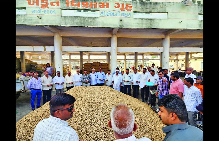 રાજ્ય સરકાર દ્વારા ખેડૂતોની બમણી આવક થાય તે માટે રાજુલા માર્કેટીંગ યાર્ડના પ્રમુખ જીગ્નેશભાઇ પટેલના માર્ગદર્શન હેઠળ રાજુલા માર્કેટીંગ યાર્ડમાં ટેકાના ભાવે મગફળી ખરીદી શરૂ કરવામા આવી હતી. આ ખરીદીનો પ્રારંભ થતા સંઘના પ્રમુખ રમેશભાઇ ડોબરીયાએ ખેડૂતો તથા ડાયરેક્ટરોને મોં મીઠુ કરાવી જે બાદ મગફળી ખરીદી શરૂ કરાઇ હતી. આ ખરીદી દરમિયાન ખેડૂતોને 1356 જેવા ભાવો આપતા ખેડૂતોમાં ખુશી જોવા મળી હતી. અને ખેડૂતોને વ્યાપક પ્રમાણમાં ફાયદો થાય તે માટે રાજુલા-ખાંભા ખરીદ વેચાણ સંઘ તત્પર રહ્યુ છે. ત્યારે મગફળીની ખરીદી માર્કેટીંગ યાર્ડમાં 3 મહિના સુધી ચાલુ રહેશે. આ મગફળી ખરીદીનો પ્રારંભ પ્રસંગે રાજુલા-ખાંભા ખરીદ વેચાણ સંઘના પ્રમુખ રમેશભાઇ ડોબરીયા, માર્કેટીંગ યાર્ડ ઉપપ્રમુખ અરજણભાઇ વાઘ, તથા યાર્ડના સદસ્ય રાજેશભાઇ પરસાણા, હુસેનભાઇ સેલોત, દાદબાપુ વરૂ, સાગરભાઇ સરવૈયા, ગુજકોમાસોલના પ્રતિનિધી મોભભાઇ, સંઘના મેનેજર સાવલિયાભાઇ, સેક્રેટરી રાજુભાઇ કાકડીયા તેમજ સંઘના ડાયરેક્ટર, ભાજપ આગેવાનો, વેપારીઓ સહિત મોટી સંખ્યામા ખેડૂતો ઉપસ્થિતિમાં મગફળી ખરીદીનો શુભારંભ કરવામાં આવ્યો હતો