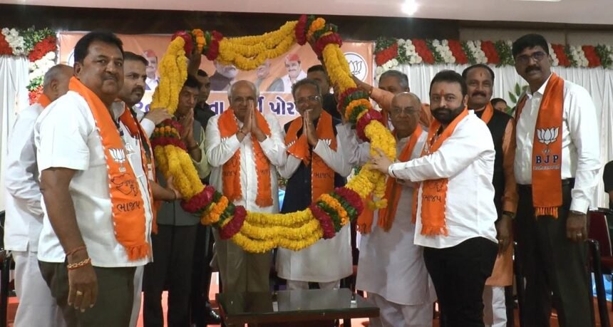 પોરબંદર લોકસભા અને પોરબંદર વિધાનસભા માટે આજે ભુપેન્દ્ર પટેલની અધ્યક્ષતામાં જિલ્લા ભાજપના હોદ્દેદારો સાથે મીટીંગ યોજાય હતી જે મિટિંગમાં પોરબંદર લોકસભાના ઉમેદવાર મનસુખ માંડવીયા અને પોરબંદર વિધાનસભાના ઉમેદવાર અર્જુન મોઢવાડિયા પણ ઉપસ્થિત રહ્યા હતા જિલ્લા ભાજપના કાર્યકરો અને હોદ્દેદારો સાથે ભુપેન્દ્ર પટેલ આગામી ચૂંટણીને લઈને મીટીંગનું આયોજન કર્યું હતું જે બેઠકમાં કેબિનેટ મંત્રી કુંવરજીભાઈ બાવળિયા, પૂર્વ કેબિનેટ મંત્રી બાબુભાઈ બોખીરીયા, કિરીટસિંહ રાણા, જીલ્લા ભાજપ પ્રમુખ રમેશભાઈ ઓડેદરા (પટેલ), શહેર ભાજપ પ્રમુખ પંકજભાઈ મજીઠીયા, મહામંત્રી અશોકભાઈ મોઢા,નિલેશભાઈ મોરી,જીલ્લા ભાજપ પ્રભારી પ્રદીપ ખીમાણી,ભાજપ અગ્રણી રામદેભાઈ મોઢવાડિયા, સામતભાઈ ઓડેદરા, યુવા અગ્રણી પાર્થ મોઢવાડિયા, આકાશ રાજશાખા, સાગર મોદી સહિતના અગ્રણીઓ હાજર રહ્યા હતા..