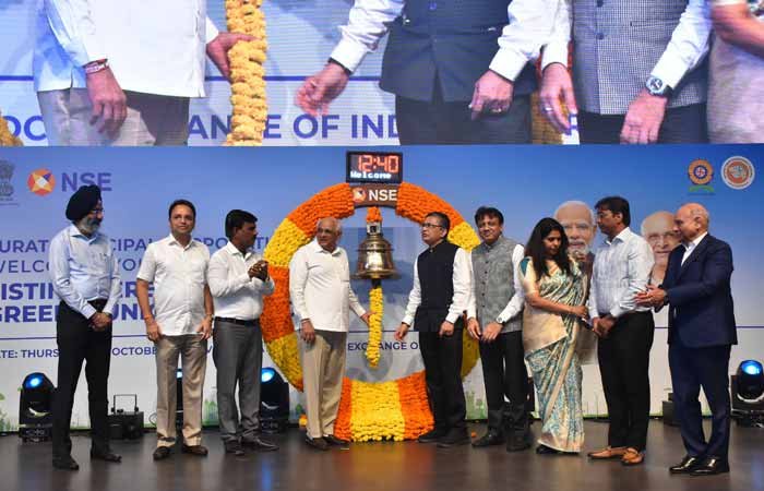 ગુજરાતના મુખ્યમંત્રી ભૂપેન્દ્ર પટેલે બુધવારે સુરત મ્યુનિસિપલ કોર્પોરેશન (SMC)ના પ્રમાણિત મ્યુનિસિપલ ગ્રીન બોન્ડની યાદીને ચિહ્નિત કરવા માટે મુંબઈ સ્થિત નેશનલ સ્ટોક એક્સચેન્જ ખાતે ઘંટ વગાડ્યો હતો.