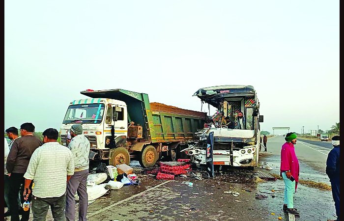 આ ઘટના અંગે મળતી માહિતી મુજબ ભાવનગર નજીક ત્રાપજ પાસે હાઈવે પર એક ડમ્પરમાં ખામી સર્જાતા ડ્રાઇવરે રોડની સાઇડમાં કર્યું હતું, આ દરમિયાન સુરતથી રાજુલા જઈ રહેલી એપલ ટ્રાવેલ્સની ખાનગી બસ ડમ્પરની પાછળ ધડાકાભેર અથડાતા 6 લોકોના ઘટનાસ્થળે જ મોત થયા હતા. જ્યારે 20થી વધુ લોકો ઘાયલ થયા છે.