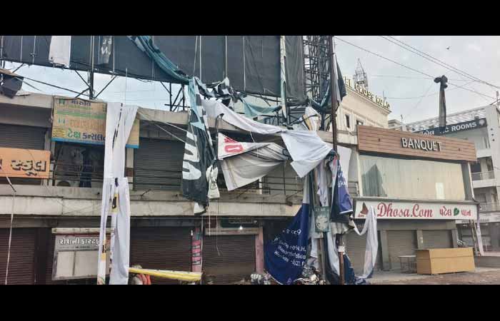 જોખમી હોર્ડિંગ્સ ઉડતા લારીનો ભુક્કો બોલાવ્યો; સદનસીબે જાનહાનિ ટળી પણ પાલિકા સામે લોકોમાં ભારે રોષ