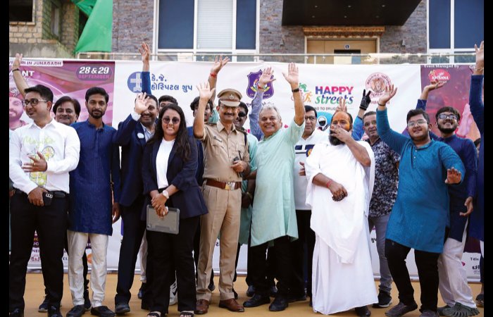 જૂનાગઢ મહાનગર પાલિકા, કે.જે.કેન્સર હોસ્પિટલ. પોલીસ વિભાગ અને રોટરી ક્લબના સંયુક્ત ઉપક્રમે હેપી સ્ટ્રીટનું ભવ્ય આયોજન ઝાંઝરડા ચોકડીથી ચોબારી ફાટક સુધી હેપી સ્ટ્રીટ અન્વયે કમિશનર ડો.ઓમ પ્રકાશ, ધારાસભ્ય સંજય કોરડીયા, પોલીસ અધિક્ષક હર્ષદ મેહતા, નરસિંહ મેહતા યુનિ.કુલપતી ડો.પ્રો.ચેતન ત્રિવેદી, કે.જે.હોસ્પિટલના ડાયરેક્ટર ભાવિન છત્રાળા ડીવાયએસપી હિતેશ ધાંધલિયા, ડો.પિયુષ બોરખતરીયા, ખાખી મઢીના મહંત સુખરામબાપુ સહીતની સંસ્થાના આગેવાનોની ઉપસ્થિતિમાં હેપી સ્ટ્રીટના આયોજનમાં વિદ્યાર્થીઓ અને વડીલોએ ઉત્સાહ પૂર્વક જોડાયા હતા અને ભવ્ય રેલી યોજાય હતી.