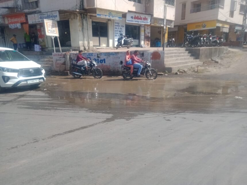છેલ્લા ઘણા સમયથી ગંદુ પાણી રસ્તા પર આવતા રોડ પણ તૂટી રહ્યો છે