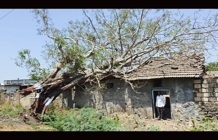 રાજુલાના માંડળ ગામે મકાન પર વૃક્ષ પડતાં મકાનને ભારે નુકસાન
