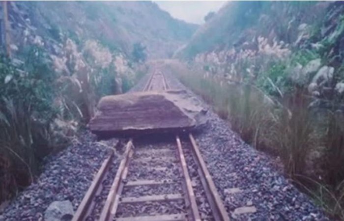 રેલવે વિભાગના સૂત્રોએ કહ્યું કે ઝારખંડમાં ભારે વરસાદ વચ્ચે સિધવાર-સાંકી ક્ષેત્રમાં ટનલ નજીક મોટી ભેખડ ટ્રેક પર ધસી પડી હતી. આ દરમ્યાન ટ્રેક પરથી પસાર થતું એન્જીન ઝપટમાં આવી ગયું હતું. એન્જીનના હડસેલાથી ભેખડ ટનલ સુધી પહોંચી ગઇ હતી. ખાલી એન્જીન જ હોવાથી કોઇ મોટી દુર્ઘટના થઇ ન હતી.