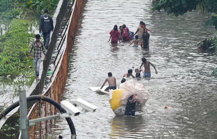 ગઈકાલના ભારે વરસાદ પછી શહેર અને ઉપનગરોમાં તબાહી મચી ગઈ છે. ઉપનગરીય રેલવે સેવાઓ અને વિમાન યાત્રા ઠપ્પ થઈ ગઈ છે. મુંબઈમાં 300થી 315 મી.મી. વરસાદથી માર્ગો અને નીચાણવાળા વિસ્તારમાં પાણી ભરાઈ ગયા છે.