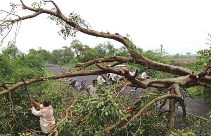 બીજી તરફ જાફરાબાદના બાબરકોટ ગામેથી મીતીયાળા ગામના જવાના માર્ગ પર મહાકાય પીપળનું વૃક્ષ ધરાશાયી થયુ હતું.