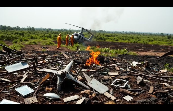 ઘટનાના થોડા સમય બાદ સ્થાનિક ટીવી ચેનલે એક વીડિયો બતાવ્યો, જેમાં ગાઢ જંગલો વચ્ચે હેલિકોપ્ટરનો કાટમાળ સળગતો નજરે આવી રહ્યો હતો. દુર્ઘટનામાં માર્યા ગયેલા લોકોમાં મંત્રી એડવર્ડ ઓમાન બોઆમાહ અને ઇબ્રાહિમ મુર્તલા મુહમ્મદ પણ સામેલ છે. બોઆમાહે આ વર્ષે જાન્યુઆરીમાં રાષ્ટ્રપતિ જોન મહામાના શપથ લીધા બાદ સંરક્ષણ મંત્રી પદ સંભાળ્યું હતું. ત્યારે, મુહમ્મદ પર્યાવરણ, વિજ્ઞાન અને ટેકનોલોજી મંત્રી તરીકે કામ કરી રહ્યા હતા.