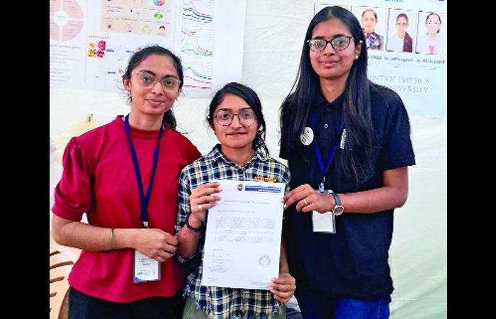 કુદરતી ડાય બનાવવા અને તેનાથી કાપડ રંગવાની એક સરળ અને એન્વાયરમેન્ટ ફ્રેન્ડલી પ્રક્રિયા ભૌતિકશાસ્ત્ર ભવનના વિદ્યાર્થીઓ પાયલ જોશી (ઙવઉ સ્કોલર) સંગીતા ચાવડા (ઙવઉ સ્કોલર) શ્રેયા કુબાવત (ખજભ સ્ટુડન્ટ) અને પ્રજ્ઞા વણકર (ખજભ સ્ટુડન્ટ)ની ટીમે, પ્રાધ્યાપક ડો. ડેવીટ ધ્રુવનાં માર્ગદર્શન હેઠળ શોધી છે. વિદ્યાર્થીઓએ બીટ, પાલક, સ્ટ્રોબેરી, ગલગોટા, દાડમ વગેરે સ્ત્રોતોમાંથી અલગ અલગ પ્રકારની નેચરલ ડાયનું અલ્ટ્રાસોનિક તરંગોથી એક્સટ્રેક્શન કર્યું હતું. ઉપરાંત ડાયીંન્ગ કરતા પહેલા કાપડના પ્રી-ટ્રીટમેન્ટ માટે વપરાતા એલ્યુમિના કોમ્પલેક્ષની જગ્યાએ એલોવેરા, આમળા જેવા પદાર્થોનો ઉપયોગ કર્યો હતો જેથી પ્રદૂષણ ઓછું કરી શકાય. ઉપરાંત કાપડ રંગીયા પછી રંગ નીકળતો અટકાવવા માટે ડાયીંન્ગ દરમિયાન જ કાપડને હાઇડ્રોફોબિક બનાવ્યું હતું જેથી અનેક વખત ધોવાણ પછી પણ કાપડમાંથી રંગ નીકળતો નથી. ભૌતિકશાસ્ત્ર ભવનના વિદ્યાર્થીઓની ટીમે તેમનું આ સંશોધન મેકર ફેસ્ટ 2025 ખાતે રજૂ કર્યું હતું જેને લોકો તરફથી ખૂબ સારો પ્રતિસાદ મળ્યો હતો. વિદ્યાર્થીઓની આ સિદ્ધિ બદલ ભૌતિકશાસ્ત્ર ભવનના અધ્યક્ષ પ્રો. (ડો.) નિકેશ શાહ, પ્રાધ્યાપક ડો. પિયુષ સોલંકી, ડો. ડેવીટ ધ્રુવ તેમજ અન્ય પ્રાધ્યાપકોએ શુભેચ્છા પાઠવી હતી