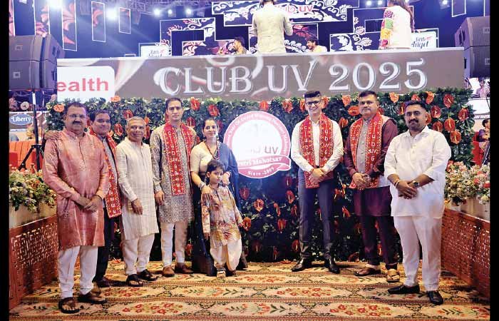 રાજકોટની ઉત્સવપ્રિય જનતા માટે જાણીતા કલબ યુવી રાસોત્સવમાં ન્યુ 150 ફૂટ રિંગ રોડ પર આવેલા વિશાળ ગ્રાઉન્ડમાં નવરાત્રી મહોત્સવની રંગત પૂરજોશમાં ચાલી રહી છે. કલબ યુવીનું પ્રાચીન સંસ્કૃતિને ઉજાગર કરતું અને મા નવદુર્ગાના નવ સ્વરૂપો દર્શાવતું ભવ્ય એન્ટ્રી ગેટ ખેલૈયાઓ અને દર્શકો માટે મુખ્ય આકર્ષણનું કેન્દ્ર બન્યું છે.પાંચમા નોરતે કલબ યુવીની પરંપરાગત માતાજીની આરતીમાં ઉમિયાધામ સિદસરના પ્રમુખ અને કલબ યુવીના એડવાઈઝરી ડાયરેક્ટર મૌલેશભાઈ ઉકાણી, ધારાસભ્ય રમેશભાઈ ટીલાળા, ઉમિયાધામના ઉપપ્રમુખ જગદીશભાઈ કોટડીયા, ઉદ્યોગપતિઓ પ્રફુલભાઈ હદવાણી, જયસુખભાઈ ધોડાસરા સહિતના અગ્રણીઓએ લ્હાવો લીધો હતો. સાંસદ રામભાઈ મોકરીયા, પૂર્વ કેન્દ્રીય મંત્રી વલ્લભભાઈ કથીરીયા, ક્રાઈમ બ્રાન્ચના ડી.સી.પી. જગદીશ બંગારવા, રાજકોટ રૂરલના એસ.પી. વિજયસિંહ ગુજજર સહિતના પોલીસ અને રાજકીય મહાનુભાવોએ માતાજીના દર્શન કરી કાર્યક્રમની શોભા વધારી હતી.કલબ યુવી દ્વારા સમાજસેવાના ભાગરૂપે રાજકોટના 18 જેટલા સુપર સ્પેશિયાલિસ્ટ તબીબોનું તેમના ઉત્કૃષ્ટ યોગદાન બદલ મૌલેશભાઈ ઉકાણી અને ટીમ દ્વારા સન્માન કરવામાં આવ્યું હતું.