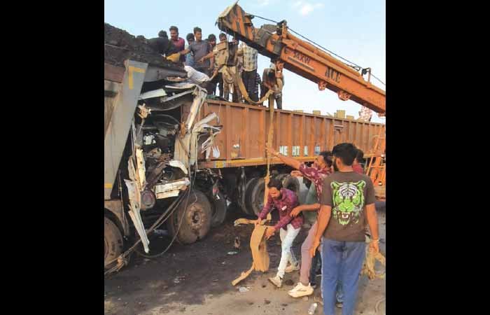 કેબિનમાં ફસાયેલા ચાલકને એક કલાકની જહેમત બાદ જેસીબી-ક્રેન વડે બહાર કઢાયો: તંત્રની બેદરકારી સામે રોષ