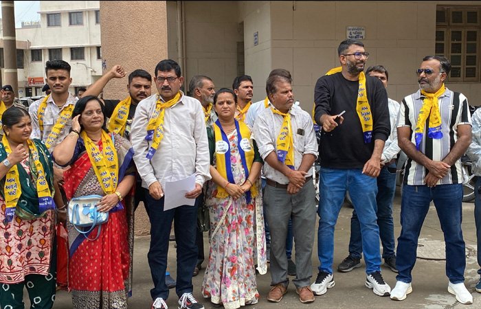 આપ શહેર પ્રમુખ દિનેશ જોશી તથા અન્ય કાર્યકર્તાઓ દ્વારા વિરોધ પ્રદર્શન કરવામાં આવી રહ્યું હતું ત્યારે દિનેશ જોશીએ પોલીસને આપનો ખેસ પહેરાવતા મામલો બીચક્યો હતો અને ઝપાઝપી થઈ હતી ત્યારબાદ તમામ કાર્યકર્તાઓની પોલીસે અટકાયત કરી હતી.