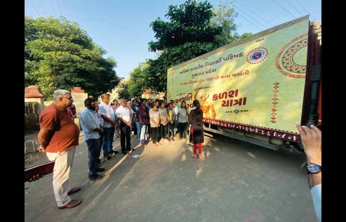 આ યાત્રાએ સવારે 7:20 વાગ્યે ઘોડાસરા કોલેજથી શરૂઆત કરી શુભાષ મહિલા કોલેજ, સીએલ કોલેજ, નરસિંહ મેહતા યુનિ. અને પોલીટેકનિક તથા પીકેએમ કોલેજ સહિતના શૈક્ષણિક સંસ્થાઓની મુલાકાત લીધી હતી. દરેક સ્થાને કળશનું પૂજન, દીપ પ્રજ્વલન અને ગૌરવપૂર્ણ સૂત્રોચ્ચાર સાથે ઉમંગભેર સ્વાગત થયું હતું. આ કાર્યક્રમમાં કુલપતિ ડો. પ્રતાપસિંહ ચોહાણ, રજિસ્ટ્રાર રણજીત પરમાર, ઇસી મેમ્બર દિનેશભાઈ ડઢાણીયા અને વિવિધ કોલેજોના પ્રિન્સિપાલો સહિતના મહાનુભાવો ઉપસ્થિત રહ્યા હતા. ખાસ નોંધનીય છે કે, 1000થી વધુ વિદ્યાર્થીઓ તેમજ શિક્ષકવર્ગ અને સ્ટાફ સભ્યોએ ઉત્સાહપૂર્વક જોડાઈને સ્વાગત કર્યું હતું. યાત્રાનું આગમન થતાં જ સમગ્ર કેમ્પસ રાષ્ટ્રીયતા અને એકતાના ભાવોથી ગુંજી ઉઠ્યું હતું. જનજાતિ સમાજના ઇતિહાસ અને યોગદાનને નવી પેઢી સુધી પહોંચાડવાનો આ યાત્રાનો હેતુ જૂનાગઢ જિલ્લામાં સફળતાપૂર્વક પૂર્ણ થયો અને વિદ્યાર્થીઓમાં સાંસ્કૃતિક જાગૃતિનો શક્તિશાળી સંદેશ પ્રસરી ગયો.