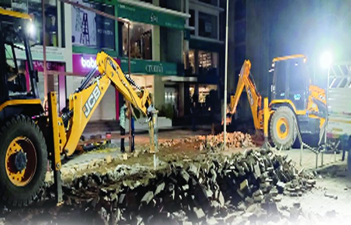 આ જમીન પર ટીંબાવાડી રોડ પર આવેલા શો-રૂમનું પાર્કીંગ છે. પોલીસે બંદોબસ્ત સાથે પાર્કીંગમાં જમીનનો કબ્ો લેવામાં આવ્યોહતો. આ સ્થળે રહેલા બ્લોકને કાઢી ત્યાં પ્લોટની હદના નિશાન કરાવવામાં આવ્યા હતા. રોડ પર આવેલા શો-રૂમના પાર્કીંગમાં પોલીસ બંદોબસ્ત સાથે થયેલી ભાંગફોડથી અનેક ચર્ચા વ્યાપી હતી.