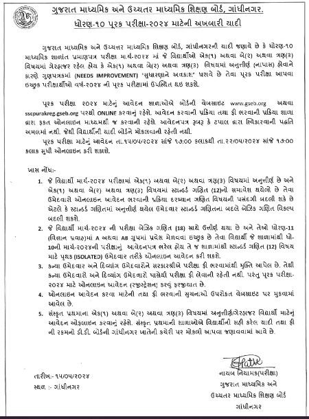 પૂરક પરીક્ષા માટે શાળાઓ ગુજરાત બોર્ડની વેબસાઈટ પર ફોર્મ ભરી શકશે, સ્ટાન્ડર્ડ ગણિતમાં નાપાસ થયેલા વિદ્યાર્થીઓ બેઝિક ગણિતનો વિકલ્પ પસંદ કરી શકશે તો વિદ્યાર્થીનીઓ અને દિવ્યાંગ વિદ્યાર્થીઓને પરીક્ષા ફીમાંથી મુક્તિ અપાઈ