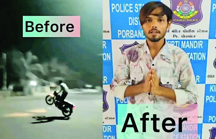 પોલીસ વિભાગ દ્વારા આ યુવાનોને કાયદાની સમજૂતી આપવામાં આવી અને આવા ખતરનાક કારસાને ટાળવા સુચના આપવામાં આવી. પોલીસ દ્વારા મળેલી માહિતી અનુસાર, સોશિયલ મીડિયા પર ફેમસ થવાના આક્રમણમાં અનેક યુવાનો પોતાનું જીવન જોખમમાં મૂકીને સ્ટંટ કરતા હોય છે. આવા કામોનો તાત્કાલિક અંત લાવવો જરૂરી છે, જેથી અન્ય યુવાનોને પણ આ કૃત્યો કરતા રોકી શકાય. કિર્તીમંદિર પોલીસ સ્ટેશનના અધિકારીએ જણાવ્યું કે, “અમે સોશિયલ મીડિયા પર નજર રાખી રહ્યા છીએ અને આવા જોખમી સ્ટંટ કરનાર લોકો સામે કડક કાર્યવાહી કરી રહ્યા છીએ. યુવાનોને એમના જીવ સાથે રમવાની જરૂર નથી. સોશ્યલ મીડીયામાં ફેમસ થવા માટે સકારાત્મક અને સુરક્ષિત રીતો અપનાવવી જોઈએ.” આ ઘટના પોરબંદરના યુવાનોમાં જાગૃતિ લાવવા માટે એક મહત્વપૂર્ણ પગલું સાબિત થશે. જો યુવાનો આ રીતે કાયદાનો ભંગ કરશે તો પોલીસ તેમના વિરૂદ્ધ કડક પગલાં લેશે.