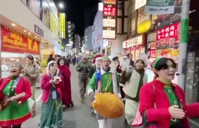ખ્રિસ્તી ધર્મમાં માનતા લોકો માટે ક્રિસમસ એક મહત્વપૂર્ણ તહેવાર છે. જો કે આ તહેવારમાં અન્ય ધર્મના લોકો પણ ભાગ લે છે. જાપાનના ટોકિયો શહેરમાં પણ લોકોએ નાતાલના તહેવારની ખૂબ જ ધામધૂમથી ઉજવણી કરી હતી. ત્યાંનો એક વીડિયો આ દિવસોમાં સોશિયલ મીડિયા પર વાયરલ થઈ રહ્યો છે, જેમાં કેટલાક લોકો સાન્ટા ડ્રેસમાં ‘હરે કૃષ્ણ’ની ધૂન પર ક્રિસમસની ઉજવણી કરતા જોવા મળે છે. વીડિયોમાં દાવો કરવામાં આવી રહ્યો છે કે આ લોકો ઈસ્કોનના અનુયાયીઓ છે. લોકો ‘હરે કૃષ્ણ, હરે રામ’ ના ધૂન પર નાચતા જોવા મળે છે.