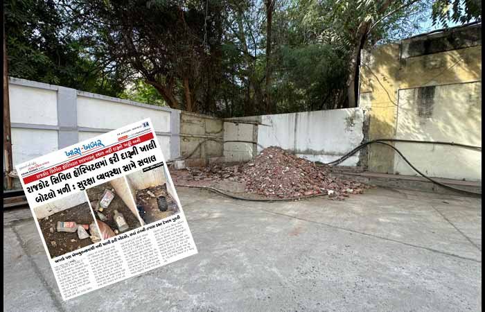 સૌરાષ્ટ્રની સૌથી મોટી રાજકોટ સિવિલ હોસ્પિટલ વારંવાર કોઇને કોઇ કારણોથી વિવાદમાં આવી રહી છે. છેલ્લા એક મહિનામાં સિવિલ હોસ્પિટલમાં બેથી ત્રણ વાર દારૂની ખાલી બટલો મળી આવી હતી. ત્યારે રાજકોટ સિવિલ હોસ્પિટલ સારવારનું સ્થળ નહીં દારૂનો અડ્ડો બની ગયો હોવાનો 1 ડિસેમ્બરના રોજ ખાસ ખબર ન્યૂઝ દ્વારા અહેવાલ પ્રસિદ્ધ કરવામાં આવ્યો હતો. અહેવાલ પ્રસિદ્ધ થતાં જ સિવિલ હોસ્પિટલનું તંત્ર હરકતમાં આવ્યુ હતુ અને દારૂનો અડ્ડો બની ગયેલું શૌચાલય તોડી પાડવાનો આદેશ કરવામાં આવ્યો હતો. હાલ દારૂના અડ્ડો બની ગયેલું શૌચાલય તોડી પાડવામાં આવ્યુ છે. તેમજ સુરક્ષા વ્યવસ્થા પણ મજબૂત કરી દેવામાં આવી છે. ખાસ કરીને રાત્રિના સમય દરમિયાન અસામાજિક તત્વો દ્વારા કરવામાં આવતા દૂષણો બંધ કરવાનો પ્રયાસ કરવામાં આવ્યો છે.