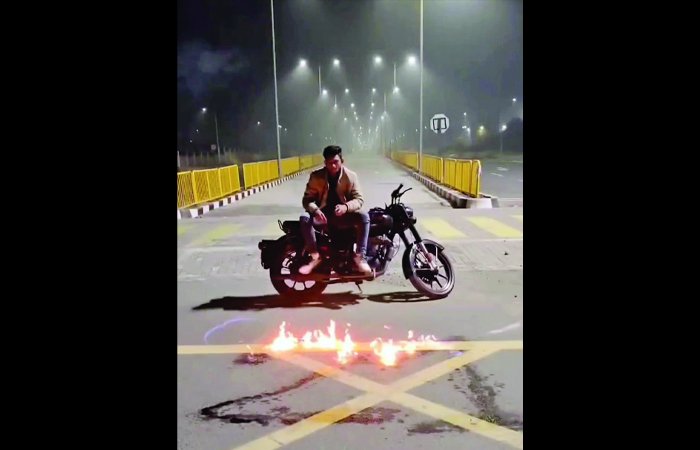 રાજકોટ શહેરમાં એક વીડિયો સોશિયલ મીડિયા પર વાઇરલ થવા પામ્યો હતો. જેમાં શહેરના નવા 150 ફૂટ રિંગ રોડ પર ગઈકાલે 24/12/2024ના રોજ રાત્રિના સમયે એક યુવાન બુલેટ લઈને આવે છે પછી પોતે બુલેટને પાર્ક કરી તેના પર બેસી જાય છે. જેની આગળ નીચે કોઈ જ્વલંત પદાર્થ રસ્તા પર છાંટી 21 નંબર લખવામાં આવ્યો હતો. જેના પર દીવાસળી મુકતા રસ્તા પર આગ લાગી હતી અને 21 નંબર ભૂંસાય ગયો હતો. ગઈકાલે આ યુવાન પોતાના જન્મ દિવસના 21 વર્ષ પૂર્ણ કરત પોતે આ મુજબ રીલ બનાવી સોશિયલ મીડિયામાં વાઇરલ કરી હતી. જેના આધારે પોલીસે તેની શોધખોળ હાથ ધરી હતી પોલીસે ટેક્નિકલ એનાલિસિસ અને ટેક્નિકલ સોર્સીસના આધારે વાઇરલ વીડિયો અંગે માહિતી મેળવતા આ વીડિયોમાં દેખાતો યુવાન શિવપરામાં રહેતા જીત રવિભાઈ રાઠોડ હોવાનું સામે આવતા લોકેશન મેળવી તેની અટકાયત કરી ગુનો નોંધી ધરપકડ કરી કાયદેસરની કાર્યવાહી હાથ ધરી હતી.
