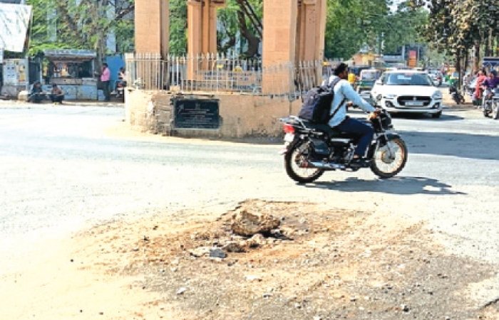 ખાડા પર ભાજપનો ધ્વજ લગાવી વિરોધ નોંધાવ્યો
