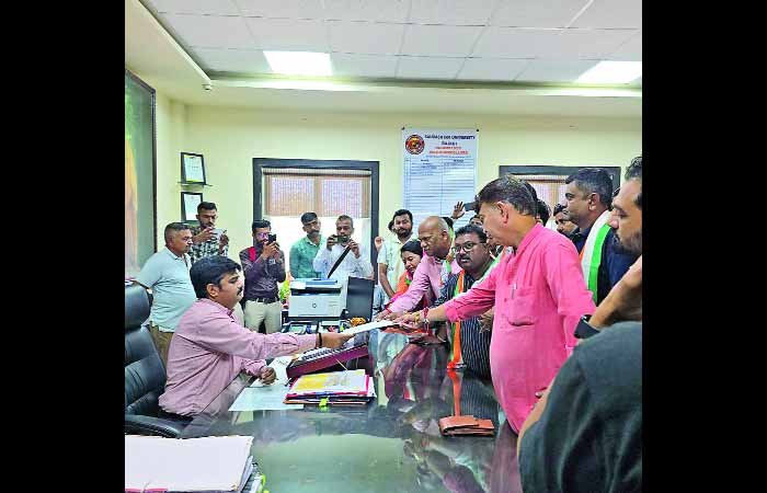 ગુજરાત પ્રદેશ કોંગ્રેસ સમિતિના જનરલ સેક્રેટરી મહેશ રાજપૂતે કુલપતિ ડૉ. ઉત્પલ જોશીને આયનો દર્શાવ્યો