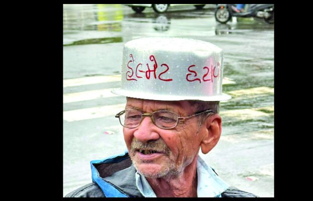 માથામાં તપેલી પહેરી નાગરિકનો વિરોધ: મને કાળા પાણીની સજા કરશો તો પણ હેલ્મેટ નહીં પહેરૂં