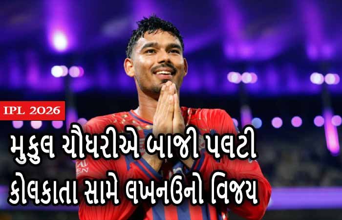 આઈપીએલ-2026માં આજે કોલકાતા નાઈટ રાઈડર્સ અને લખનઉ સુપર જાયન્ટ વચ્ચે મેચ રમાઈ હતી. મેચમાં બેટર મુકુલ રોયે દમદાર બેટિંગ કરીને કોલકાતા પાસેથી જીત છિનવી લખનઉને વિજય અપાવ્યો છે. મુકુલે સાતમાં ક્રમે બેટિંગ આવી માત્ર 27 બોલમાં 54 રન (2 ફોર અને 7 સિક્સ) ફટકારી લખનઉને જીત અપાવી છે.