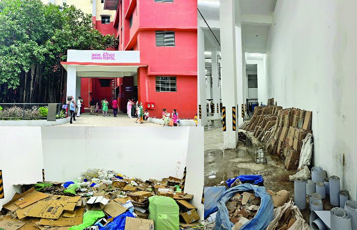 આ ઉપરાંત આવો જ ભંગાર સૌરાષ્ટ્રની સૌથી મોટી હોસ્પિટલમાં પણ ખડકવામાં આવતો હોવાનું સામે આવ્યું છે. જે અંગે ખાસ-ખબર દ્વારા ટૂંક સમયમાં પર્દાફાશ કરવામાં આવશે. શહેરના મધ્યમાં આવેલી અને સૌરાષ્ટ્રની એકમાત્ર એવી હોસ્પિટલ કે જ્યાં સૌરાષ્ટ્રભરના દર્દીઓ સારવાર માટે આવતા હોય છે તે ઝનાના હોસ્પિટલમાં તંત્રની બેદરકારી સામે આવી છે. અનેક વખત સ્વચ્છતાને લઈને ઝનાના હોસ્પિટલ સામે પ્રશ્ર્નો ઉભા થયા છે ત્યારે ફરી એક વખત ઝનાના હોસ્પિટલના સેલરમાં કચરાના ઢગલા જોવા મળ્યા હતા. વાહનોના પાર્કિંગની સુવિધા માટે બનાવવામાં આવેલા સેલરમાં વાહનો તો નહીં પરંતુ કચરાના ગંજ જોવા મળી રહ્યા છે જેના કારણે દર્દીઓના સ્વાસ્થ્ય સામે અનેક પ્રશ્ર્નો ઉઠી રહ્યા છે. તંત્ર હવે શું પગલાં લેશે તે તો જોવું રહ્યું!