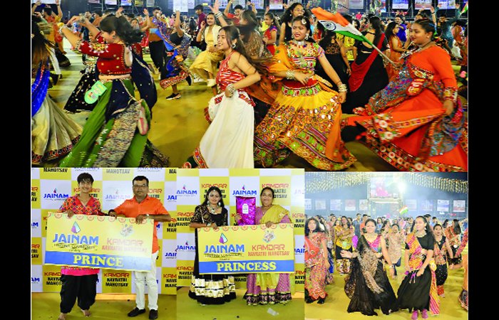આ રાસોત્સવને ઉદ્ઘાટકો સર્વશ્રી શ્રીમતિ દામીનીબ્ોન કામદાર, હિતેશભાઈ મહેતા, વિભાશભાઈ શેઠ, જયભાઈ ખારા, જેનીશભાઈ અજમેરા, શૈલેષભાઈ માંઉ, ચંદ્રકાંતભાઈ શેઠ સહીતનાં મહાનુભાવોનાં હસ્તે ખુલ્લો મુકાયો હતો. આ પ્રસંગે જૈનમ પરિવારનાં તમામ કમીટી મેમ્બરો એક સરખા વસ્ત્ર પરિધાન કરી, ખેલૈયાઓ રંગબ્ોરંગી ભાતીગણ વેશભુષામાં જોડાયા હતા. આ તકે તીરંગાની થીમ ઉપર આધારીત રંગીન બલુન થી સજાવટ કરવામાં આવી હતી. યોજાયેલ ઓપનીંગ શેરેમનીમાં સૌથી મોખરે ભારતમાતા બનેલ બાળા અને ત્યારબાદ માં જગદંબાનાં નવદુર્ગા સ્વરૂપ એવી નવ બાળાઓ વિવિધ સ્વરૂપે જોડાયેલ હતા. ધમાકેદાર મ્યુઝીક અને લાઈટીંગ માધ્યમથી રેલી સ્વરૂપે આ સેરેમની યોજાઈ હતી.આજે યોજાયેલ પ્રથમ નોરતે ખેલૈયાઓએ ખૂબ ઉત્સાહભેર ભાગ લઈને રાસોત્સવની મોજ માણી હતી. નાના બાળકો, યુવાનો, મહીલાઓ ઉપરાંત સીનીયર સીટીઝન પણ ખુબ હોંશભેર સુંદર વસ્ત્રોમાં સજ્જ થઈને જોડાયા હતા. વિવિધ રંગી પાઘડીઓ, ટ્રેડીશ્નલ સાથે લેટેસ્ટ ડીઝાઈનીંગનાં વસ્ત્રોનાં સમન્વય સાથે પરિધાનમાં સજ્જ ખેલૈયાઓથી રાસોત્સવનું મેદાન શોભી રહયું હતું. વિવિધ સોશ્યલ મીડીયા પ્લેટફોર્મ ફેસબ્ુાક અને યુ ટયુબ ઉપર આ જૈનમ કામદાર નવરાત્રી રાસોત્સવ નાં તમામ દિવસોનું લાઈવ પ્રસારણ કરવામાં આવી રહયું છે જેનો પણ લાભ મોટી સંખ્યામાં લોકો લઈ રહયા છે. સંગીતકાર પંકજભાઈ ભટ્ટની આગેવાનીમાં સાંજીદાઓની ટીમ દ્વાર ધમાકેદાર સંગીતની સુરાવલીઓ વચ્ચે ગાયક કલાકારોએ ઉપસ્થિત તમામ લોકોને રાસે રમવા મજબ્ુાર કરી દે તેવું વાતાવરણ ઉભુ કરેલ હતું.