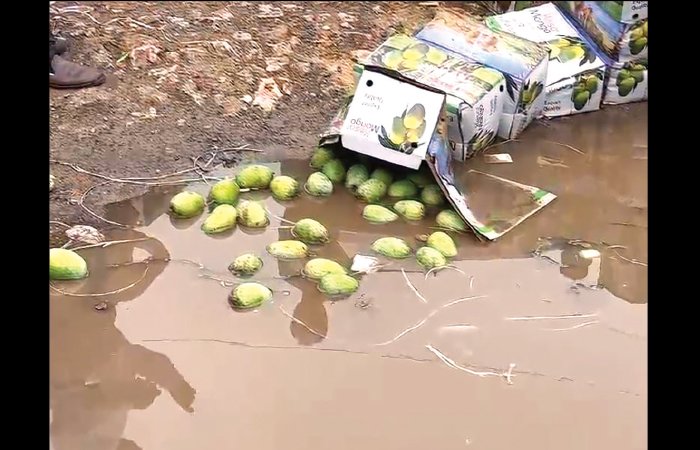 ખુલ્લામાં રાખેલા કેરીના પાંચ છ હજાર બોક્સ વરસાદમાં પલળી ગયા હતા જેથી કેરી બહાર નીકળી ગઈ હતી. વેપારીઓએ જણાવ્યું હતું કે યાર્ડદ્વારા કેરીના બોક્સ દીઠ બે રૂપિયા સેસ વસુલ કરવામાં આવે છે તેમ છતાં યાર્ડ દ્વારા પૂરતી સુવિધા આપવામાં આવતી નથી. વરસાદના લીધે કેરી પલળી જતા કેરી લઈ આવેલા ખેડૂતો ઇજારદારો કફોડી હાલતમાં મુકાયા હતા અને યાર્ડમાં વધુ સુવિધા ઉપલબ્ધ કરવામાં આવે એવી માંગણી કરી હતી.