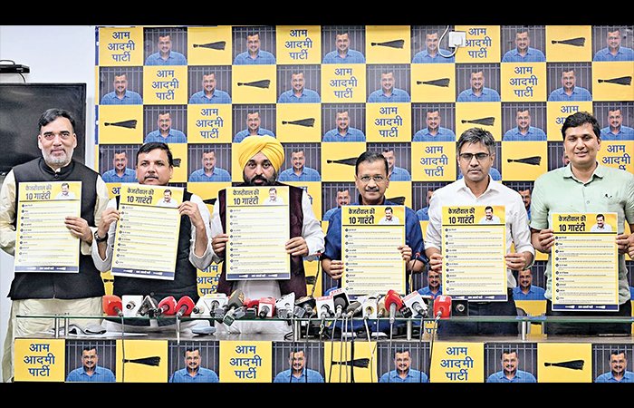 વચગાળાના જામીન પર છુટેલા દિલ્હીના મુખ્યમંત્રી અરવિંદ કેજરીવાલ હાલ લોકસભા ચૂંટણી વચ્ચે પુરજોશમાં પ્રચારમાં લાગી ગયા છે. કેજરીવાલે દેશવાસીઓને 10 ગેરંટી આપી છે, જેમાં ગરીબોને મફત વીજળી, દરેક ગામ અને મહોલ્લામાં કલીનીક, અગ્નિવીર યોજના બંધ કરવી, ભ્રષ્ટાચારના વોશિંગ મશીનને છડેચોક તોડવું અને મફત શિક્ષણ જેવી ગેરંટીઓ સામેલ છે.