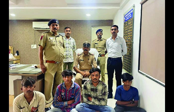 ગત તા. 29ના રોજ નવાગામ પાસે નારાયણનગર, કચ્છ હાઈવે ટ્રાન્સપોર્ટવાળી શેરીમાં આવેલા મારૂતિ એન્ટરપ્રાઈઝના ગોડાઉનમાં રાખેલા ટી.વી., હોમ થિયેટર, સાઉન્ડ બાર સહિતની અનેક વસ્તુઓની ચોરી કરતા આરોપી હેમાંગ જગદીશ જીંજવાડીયા, સુનીલ રણછોડ મોરવાડીયા, દર્શન જાદવભાઈ ગોધાણી, ભાવીન વિનોદ મોરવાડીયાને રૂા. 2.5 લાખથી વધુના મુદ્દામાલ સાથે કુવાડવા પોલીસ ઈન્સ્પેકટર વી. આર. રાઠોડ, હેડ.કો. અજયકુમાર નિમાવત, રાઈટર યુવરાજસિંહ જાડેજા તથા સુરેશભાઈ કુમખાણીયા તથા એ. બી. ઝાલા સહિતના સ્ટાફે ઝડપી પાડી યોગ્યસરની કાર્યવાહી હાથ ધરી છે.