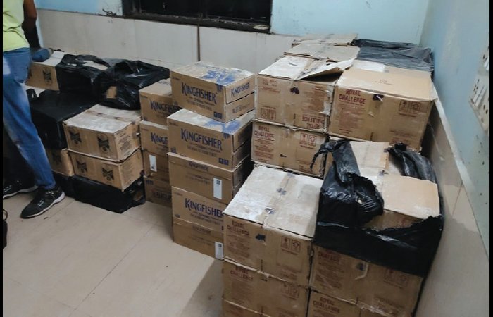 ગુજરાતમાં દારૂબંધી હોવા છતાં, અવારનવાર વિદેશી દારૂના મોટા જથ્થા ઝડપાય છે. તાજેતરમાં પોરબંદરના કુછડી વાડી વિસ્તારમાં દરોડો પાડી હાર્બર મરીન પોલીસે દારૂનો મોટો જથ્થો ઝડપી પાડયો છે. જે દરોડામાં 630 બોક્સ દારૂ અને બિયરનો જથ્થો પકડાયો છે. હાર્બર મરીન પોલીસ સ્ટેશનના ઈન્સ્પેક્ટર એસ.ડી. સાળુંકે, તથા તેમની ટીમે બાતમી આધારે આ રેઈડ કરી. રેઈડ દરમિયાન ગોડાઉનમાંથી 512 બોક્સ દારૂ, 73 બોક્સ કાચના ચપટા અને 41 બોક્સ બિયર મળી આવ્યા હતા.કુલ રૂ.34 લાખનો મુદ્દામાલ કબ્જે કરવામાં આવ્યો છે. આ મામલે સિલ્વર કલરની ઇનોવા જીજે 16 બીકે 9691ના માલિક, કુછડી ગામની વાડીના માલિક અને ટ્રક જીજે 25 યુ 9633ના ચાલક સામે ગુનો દાખલ કરાયો છે. રેઈડ દરમ્યાન આરોપીઓ ભાગી છૂટ્યા હતા,