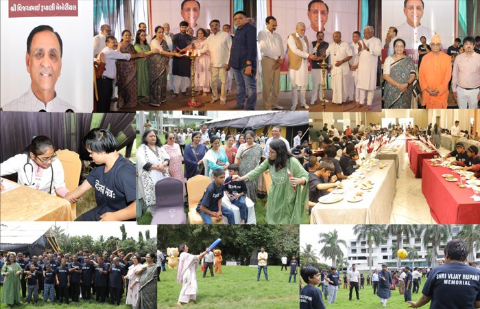 પૂર્વ મુખ્યમંત્રી સ્વ. વિજયભાઈ રૂપાણી આજે આપણી વચ્ચે નથી, પરંતુ તેમનો હસમુખો ચહેરો અને દયાળુ આત્મા કાયમ સ્મરણમાં રહેશે. હૃદયસ્થ વિજયભાઈને બાળકો ખૂબ પ્રિય હતા અને તેમાં પણ ખાસ કરીને મનોદિવ્યાંગ બાળકો ઉપર અપાર સ્નેહ વરસાવતા હતા. તેમના આ માયાળુ સ્વભાવ અને સેવાકાર્યોને ધ્યાનમાં રાખીને પુજીત રૂપાણી મેમોરિયલ ટ્રસ્ટ તથા રૂપાણી પરિવાર દ્વારા આ વખતે કાલાવડ રોડ, અવધ માર્ગ ઉપર આવેલી સિઝન્સ હોટલ ખાતે ‘વિજય વ્હાલ સંગમ’ કાર્યક્રમ યોજાયો હતો. મનોદિવ્યાંગ બાળકો પ્રત્યે વિજયભાઈ અપાર લાગણી ધરાવતા હતા. તેમની લાગણી હૃદયમાં રાખી ‘વિજય વ્હાલ સંગમ’ કાર્યક્રમનું આયોજન કરવામાં આવેલું હતું. સાથેસાથે તેમના આરોગ્યની તપાસણી માટે મેડિકલ ચેકઅપ કેમ્પનું આયોજન પણ કરવામાં આવ્યું હતું. આ તકે રાજકોટના નામાંકિત ડોકટર્સ ડો. જૈમનભાઈ ઉપાધ્યાયના માર્ગદર્શન અંતર્ગત ઓર્થોપેડીક ડો. ભાવિન ગંગાજળિયા, ડો. જીત ગાંધી, એમ.ડી. ફિઝિશિયન ડો. રિદ્ધિ મહેતા, ડો. રૂપાલી મહેતા, ડો. રાજીવ મિશ્રા, બાળરોગ નિષ્ણાંત ડો. નિખિલ શેઠ, ડર્મેટોલોજીસ્ટ ડો. ચેતન લાલસેતા, ડો. એશ્ર્વર્યા ગજ્જર, કાન-નાક-ગળા નિષ્ણાંત ડો. વૈભવ વાપલિયા, દંતરોગ નિષ્ણાંત ડો. બિંદન શાહ, ડો. સેજલ શાહ તથા ઈન્ડિયન ઈન્સ્ટીટયુટ ઓફ આયુર્વેદ રીસર્ચ એન્ડ હોસ્પિટલ કોલેજ તથા આર્યવીર હોમિયોપેથીક તથા એચ. એન. શુક્લા હોમિયોપેથીક મેડિકલ કોલેજ એન્ડ હોસ્પિટલના નિષ્ણાંત તબીબો, મેડિકલ ઓફીસર્સ, નર્સિંગ સ્ટાફ તથા ફાર્મસીમાં મયુરસિંહ જાડેજા, સત્યેનભાઈ પટેલ અને તેમની ટીમે માનદ્ સેવાઓ આપી હતી.