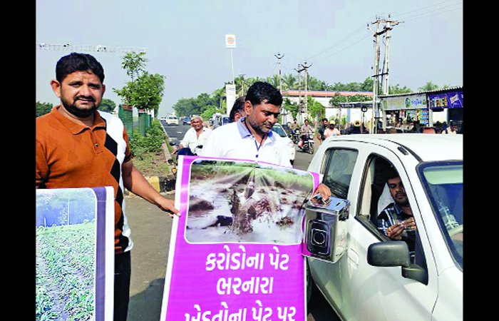 રાજકોટમાં ખેડૂતોના પાક નુકસાનીનો કોંગ્રેસે કર્યો અનોખો વિરોધ