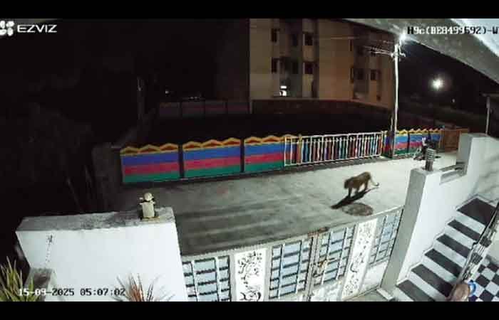 જૂનાગઢ શહેરમાં વધુ એકવાર વન્ય પ્રાણી ઘુસી આવ્યાના સીસીટીવી ફૂટેજ સામે આવ્યા છે. અગાઉ પણ અનેકવાર સિંહ – દીપડા આંટાફેરા મારતા હોઈ તેવા દર્શ્યો સામે આવ્યા છે. ત્યારે વધુ એક શહેરના પ્રણામી નગર – 2 સોસાયટીમાં રાત્રીના સમયે દીપડો ઘુસી આવતા સ્થાનિક લોકોમાં ભય અને ફફડાટ ફેલાયો હતો. શહેરની સોસાયટીમાં દીપડો આંટાફેરા મારતો હોઈ તેવા સીસીટીવી કેમેરામાં કેદ થયા હતા. દીપડો આવ્યાની જાણ સ્થાનિકોમાં થતા એકબીજાને જાણ કરીને તાત્કાલિક ચેતવણી આપી હતી. અને વન વિભાગને જાણ કરવામાં આવી હતી. અને આ દીપડાને પાંજરે પુરવા માંગ કરી હતી. રહેણાંક વિસ્તારમાં દીપડાના આંટાફેરાથી સ્થાનિકોમાં ભયનું વાતાવરણ જોવા મળ્યું હતું.
