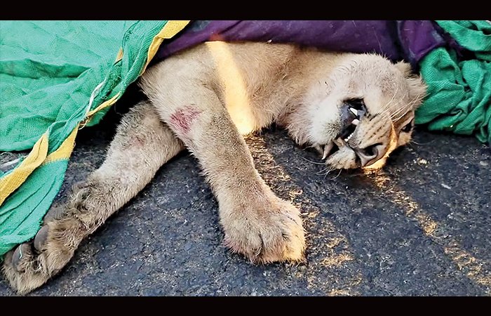 અમરેલી- સાવરકુંડલા રોડ પર દેવળીયા ગામ નજીક વાહન અડફેટે આવતા સિંહણનું મોત નિપજ્યું