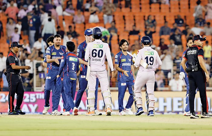 લખનઉ સુપર જાયન્ટ્સે IPL 2025ની 64મી મેચમાં ટેબલ ટોપર ગુજરાત ટાઇટન્સને 33 રનથી હરાવ્યું છે. નરેન્દ્ર મોદી સ્ટેડિયમમાં ગુરુવારે 236 રનનો ટાર્ગેટ ચેઝ કરી રહેલી ગુજરાત ટાઇટન્સની ટીમ 20 ઓવરમાં 7 વિકેટે માત્ર 202 રન જ બનાવી શકી. લખનઉએ 20 ઓવરમાં 2 વિકેટ ગુમાવીને 235 રન બનાવ્યા હતા. લખનઉ તરફથી વિલિયમ ઓરોર્કે 3 વિકેટ ઝડપી. આવેશ ખાન અને આયુષ બદોનીને 2-2 વિકેટ મળી. ગુજરાતના શાહરૂખ ખાને 57, શેરફેન રૂધરફોર્ડે 38, અને જોસ બટલરે 33 રન બનાવ્યા. કેપ્ટન શુભમન ગિલે 35 રન અને સાઈ સુદર્શને 21 રનનું યોગદાન આપ્યું. સુપર જાયન્ટ્સ તરફથી મિચેલ માર્શે 64 બોલમાં 8 છગ્ગાની મદદથી 117 રન બનાવ્યા. નિકોલસ પૂરને 27 બોલમાં 56 રનનું યોગદાન આપ્યું. GTના અરશદ ખાન અને સાઈ કિશોરને એક-એક વિકેટ મળી.ઇનિંગની છેલ્લી ઓવર નાખી રહેલા આયુષ બદોનીએ માત્ર 4 રન આપીને 2 વિકેટ ઝડપી. તેણે ત્રીજા બોલ પર કાગિસો રબાડાને અને છેલ્લા બોલ પર સાઈ કિશોરને આઉટ કર્યો. આ રીતે લખનઉએ આ મેચ 33 રનથી જીતી લીધી. ટીમે ગુજરાતને હાલની સિઝનમાં બીજી વખત હરાવ્યું છે.18મી ઓવર ફેંકવા આવેલા શાહબાઝ અહેમદે ઇકોનોમીકલ બોલિંગ કરી. તેણે એક વિકેટ લીધી. તેણે અરશદ ખાનને પણ આઉટ કર્યો. અરશદ ફક્ત એક જ રન બનાવી શક્યો.16મી ઓવર ફેંકતા આકાશ દીપે 17 રન આપ્યા. શાહરૂખ ખાને ઓવરના પહેલા ત્રણ બોલ પર સતત ત્રણ બાઉન્ડરી ફટકારી. જેમાં બે ચોગ્ગા અને એક છગ્ગો સામેલ હતો.