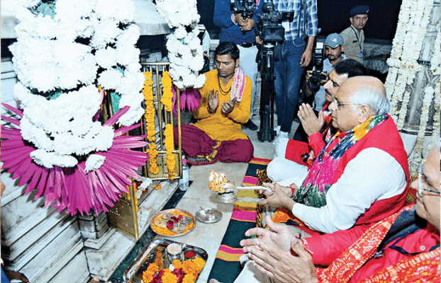 અંબિકા રથનું પ્રસ્થાન કરાવતા ભૂપેન્દ્ર પટેલ: મહાઆરતીમાં નેતાઓ સામેલ