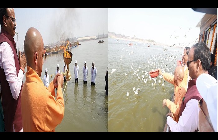 મુખ્યમંત્રી યોગી આદિત્યનાથે ગુરુવારે પ્રયાગરાજમાં ત્રિવેણી પૂજા કરી. આરતી કરવામાં આવી અને પછી પક્ષીઓને ભોજન આપવામાં આવ્યું.