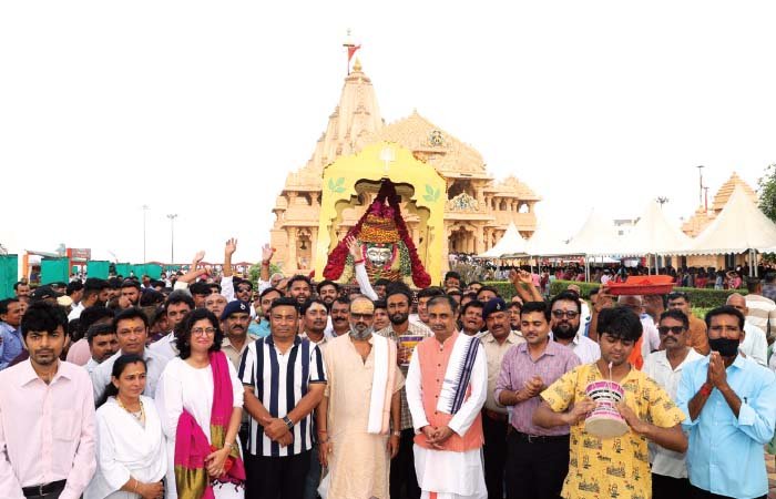 શ્રાવણ માસના સોમવારે સોમનાથ મંદિર પરિસરમાં ખાસ પાલખીયાત્રાનું પણ આયોજન કરવામાં આવે છે.જેમાં ભગવાન સ્વયં નગરચર્યાએ નીકળ્યા હોય તેવો આભાસ થાય છે.ત્યારે આ વર્ષે શ્રાવણ માસના ચાર સોમવારની સાથે પૂનમ ,અમાસ તેમજ માસિક શિવરાત્રીના દિવસે પણ પાલખીયાત્રાનું આયોજન કરાયું છે.ગઈકાલે બીજા સોમવારે પાલખી પૂજન સોમનાથ ટ્રસ્ટના સચિવ યોગેન્દ્ર દેસાઈ અને ટ્રશ્રાવણ માસના સોમવારે સોમનાથ મંદિર પરિસરમાં ખાસ પાલખીયાત્રાનું પણ આયોજન કરવામાં આવે છે.જેમાં ભગવાન સ્વયં નગરચર્યાએ નીકળ્યા હોય તેવો આભાસ થાય છે.ત્યારે આ વર્ષે શ્રાવણ માસના ચાર સોમવારની સાથે પૂનમ ,અમાસ તેમજ માસિક શિવરાત્રીના દિવસે પણ પાલખીયાત્રાનું આયોજન કરાયું છે.ગઈકાલે બીજા સોમવારે પાલખી પૂજન સોમનાથ ટ્રસ્ટના સચિવ યોગેન્દ્ર દેસાઈ અને ટ્રસ્ટ પરિવાર દ્વારા કરવામાં આવ્યું હતું.સ્ટ પરિવાર દ્વારા કરવામાં આવ્યું હતું.