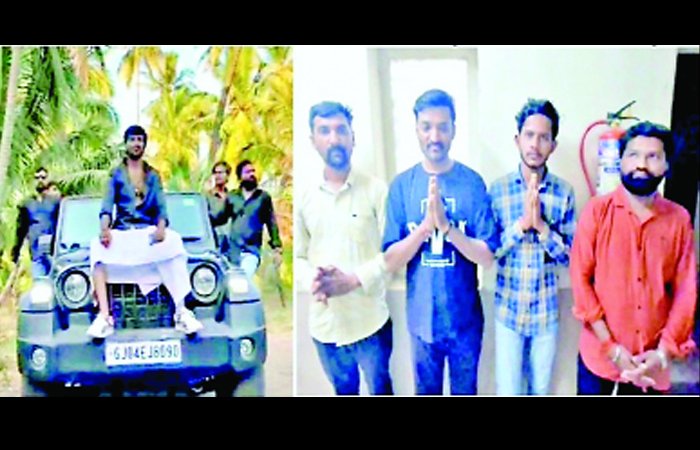 મહુવા: 4 યુવકોને ‘પુષ્પા’ની સ્ટાઇલ ભારે પડી, પોલીસે માફી