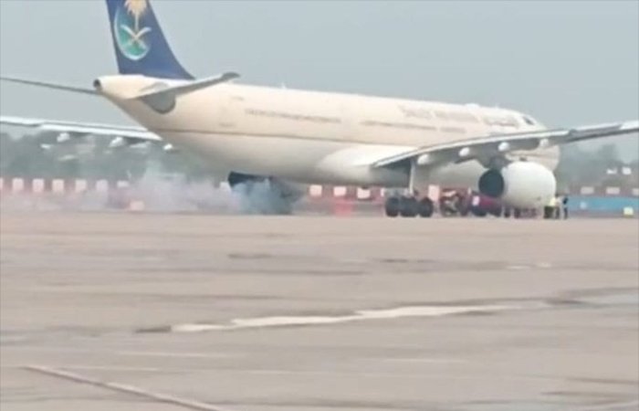 ઉત્તર પ્રદેશની રાજધાની લખનૌમાં એક વિમાનના ટાયરમાં આગ લાગી હોવાના સમાચાર છે. રવિવારે સવારે લખનૌ અમૌસી એરપોર્ટ પર ઉતરાણ કર્યા પછી, ટેક્સી-વે પર જઈ રહેલા સાઉદી અરેબિયા એરલાઇન્સના વિમાનના ડાબા ટાયરમાંથી તણખા અને ગાઢ ધુમાડો નીકળવા લાગ્યો. આ વિમાન હજ યાત્રાળુઓને લઈને જેદ્દાહથી પરત ફર્યું હતું. પાયલટે તણખાની જાણ થતાં જ એર ટ્રાફિક કંટ્રોલરને જાણ કરી. આ પછી, ફાયર ટીમ તાત્કાલિક ઘટનાસ્થળે પહોંચી ગઈ અને ફીણ અને પાણી નાખીને પરિસ્થિતિને કાબૂમાં લીધી. આ પછી, બધા મુસાફરોને સુરક્ષિત રીતે નીચે ઉતારવામાં આવ્યા.