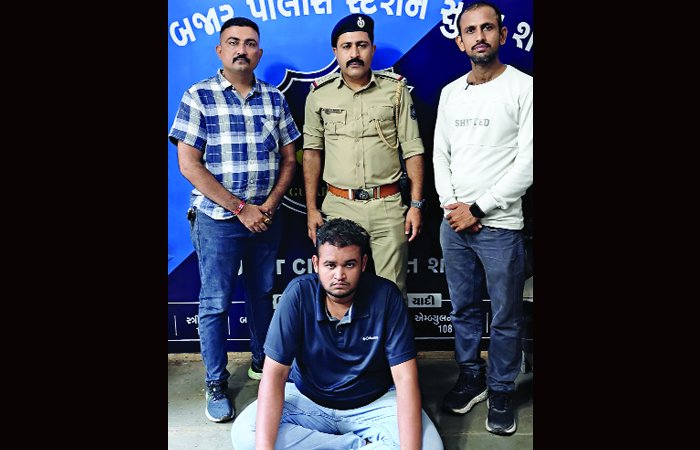 ચોકબજાર પોલીસના સર્વેલન્સ સ્ટાફે ઘટનાસ્થળે આવેલા સીસીટીવી ફૂટેજના આધારે આરોપીની ઓળખ કરતા તેને પકડવામાં સફળતા મળી હતી. આરોપીનું નામ દેવ હિરેનભાઈ પટેલ (ઉં.વ. 22, રહે. ઇ-09, શ્રીજીચરણ એપાર્ટમેન્ટ, સુમુલ ડેરી રોડ, કતારગામ, સુરત) છે. મૂળ રહેવાસી પટેલ ફળિયુ, સોજીત્રા, જિલ્લો: આનંદ છે.